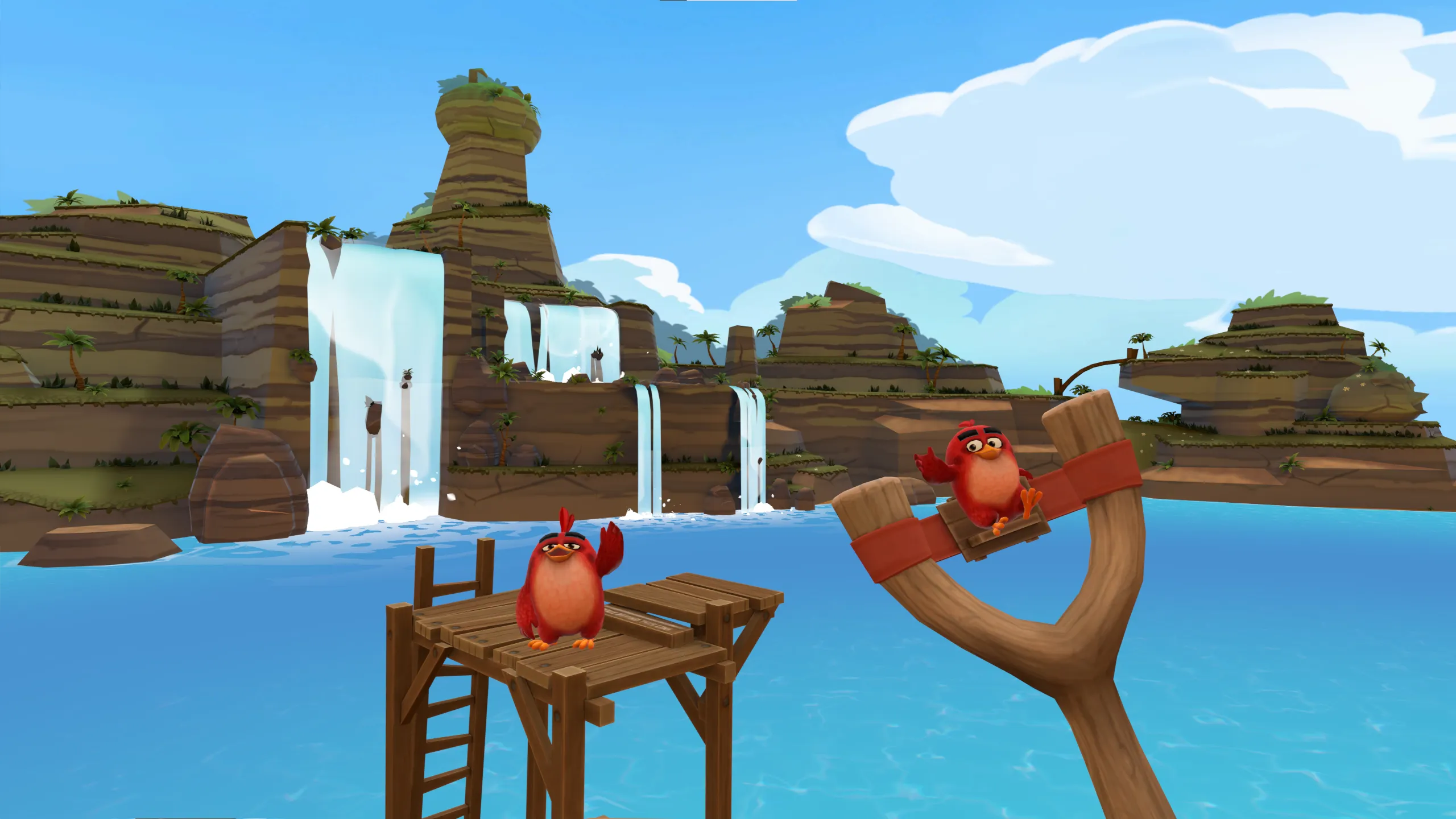 Rゲーム「アングリー・バード VR:アイル・オブ・ピッグズ」でゲームの環境に入り込み、自分の手に持ったパチンコで怒れる鳥たちを飛ばそう。レッド、チャック、ボム、ブルースと一緒に、奪われた卵を取り戻せ!MR(混合現実)対応を追加!