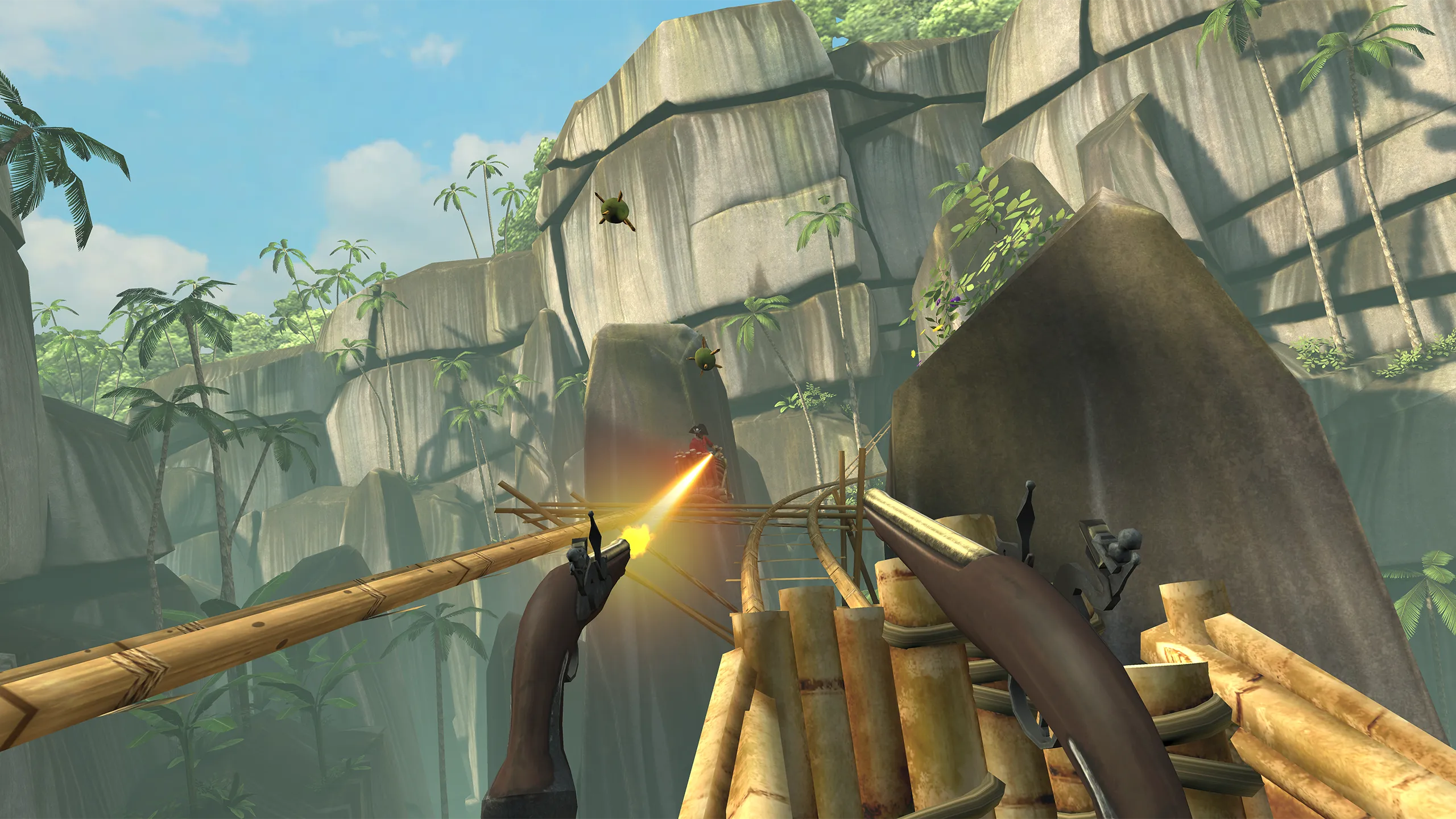 合併症のない乗り物を楽しむことはできますが、地図の要素を撮影したり、発射物が来るのを防御することもできます。