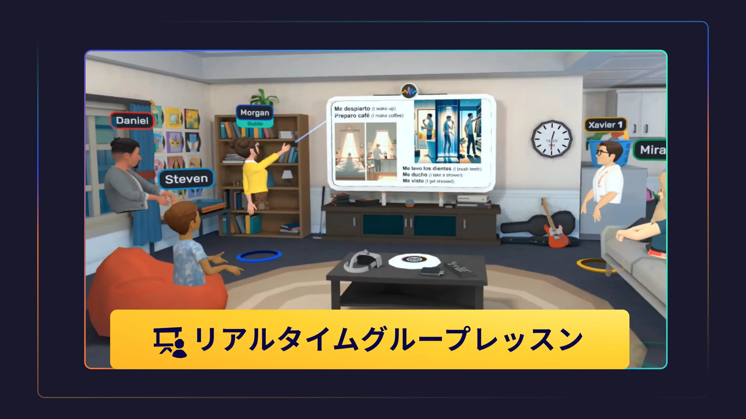 VR空間でプロの講師とリアルタイムの英会話レッスンを受けられる学習アプリ