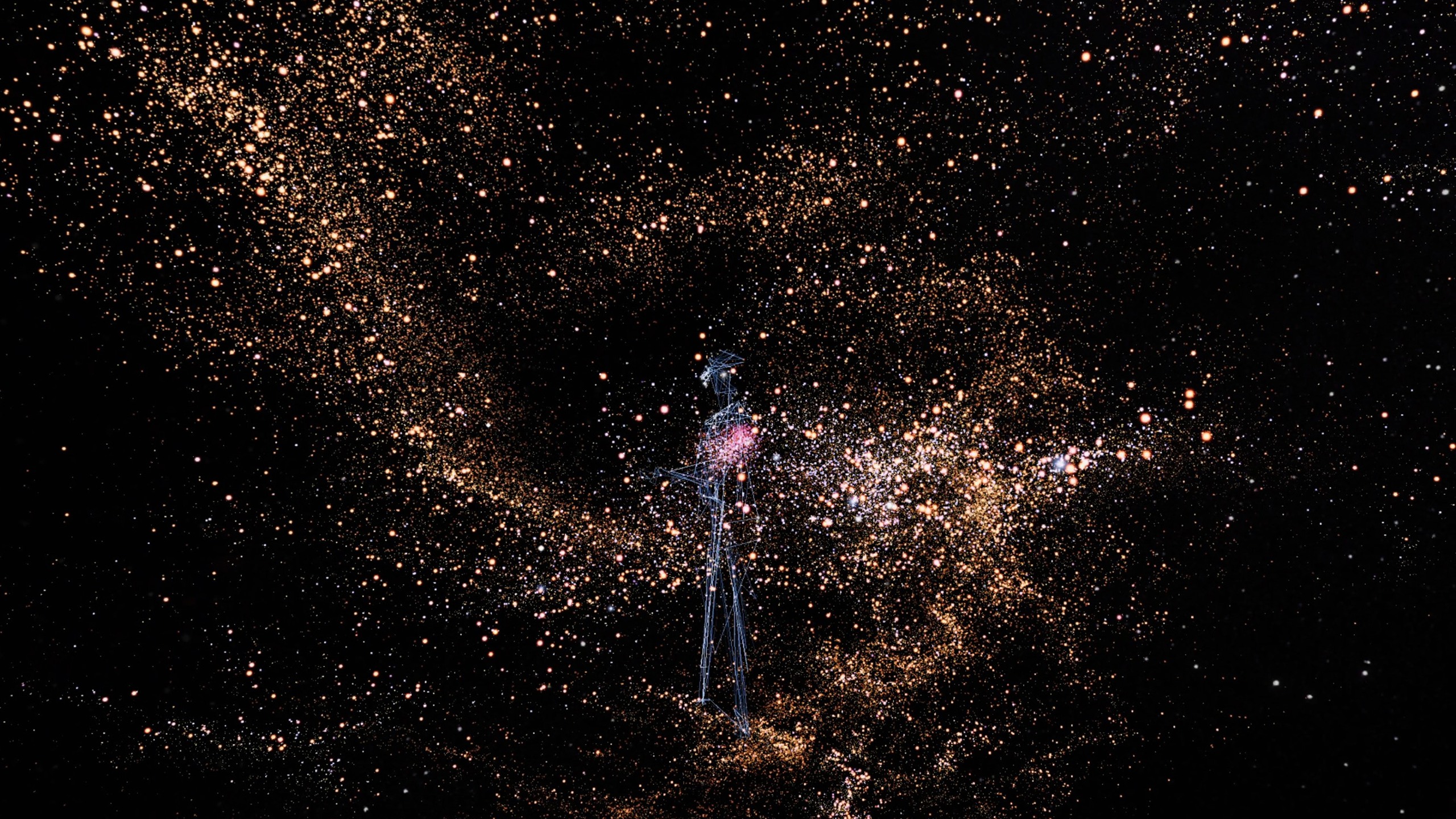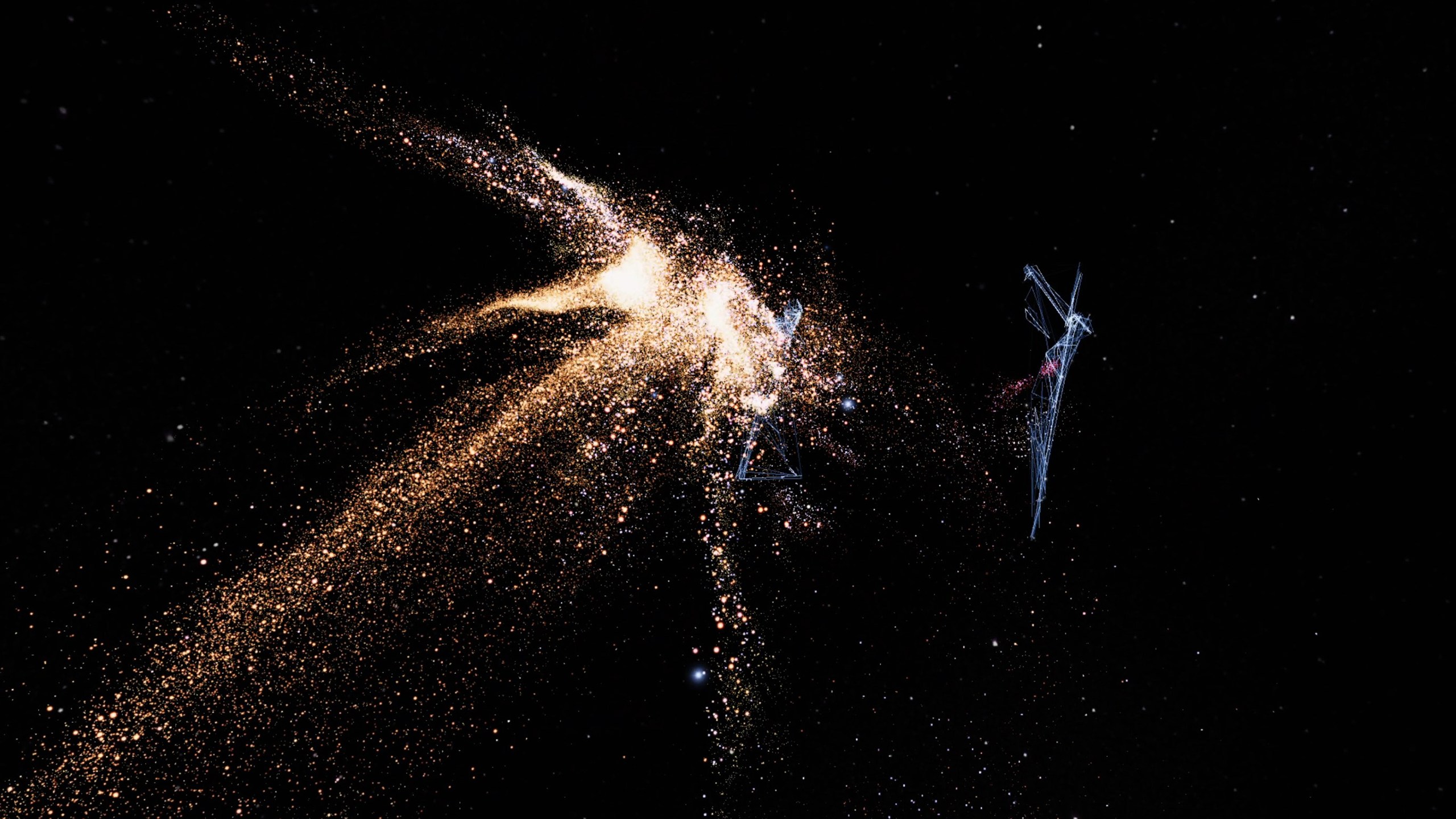 もう一人の人が体験に参加し、別の星座の形でチラッと見えます。 あなたの身体の重力効果が星を導き、一緒に遊んだり踊ったりすると、空間でコラボレーション的でダイナミックな彫刻を形成します。 Star-Stuffでは、星を望むことで、私たちはより深く内面を見ることができ、宇宙自身を知る方法になります。