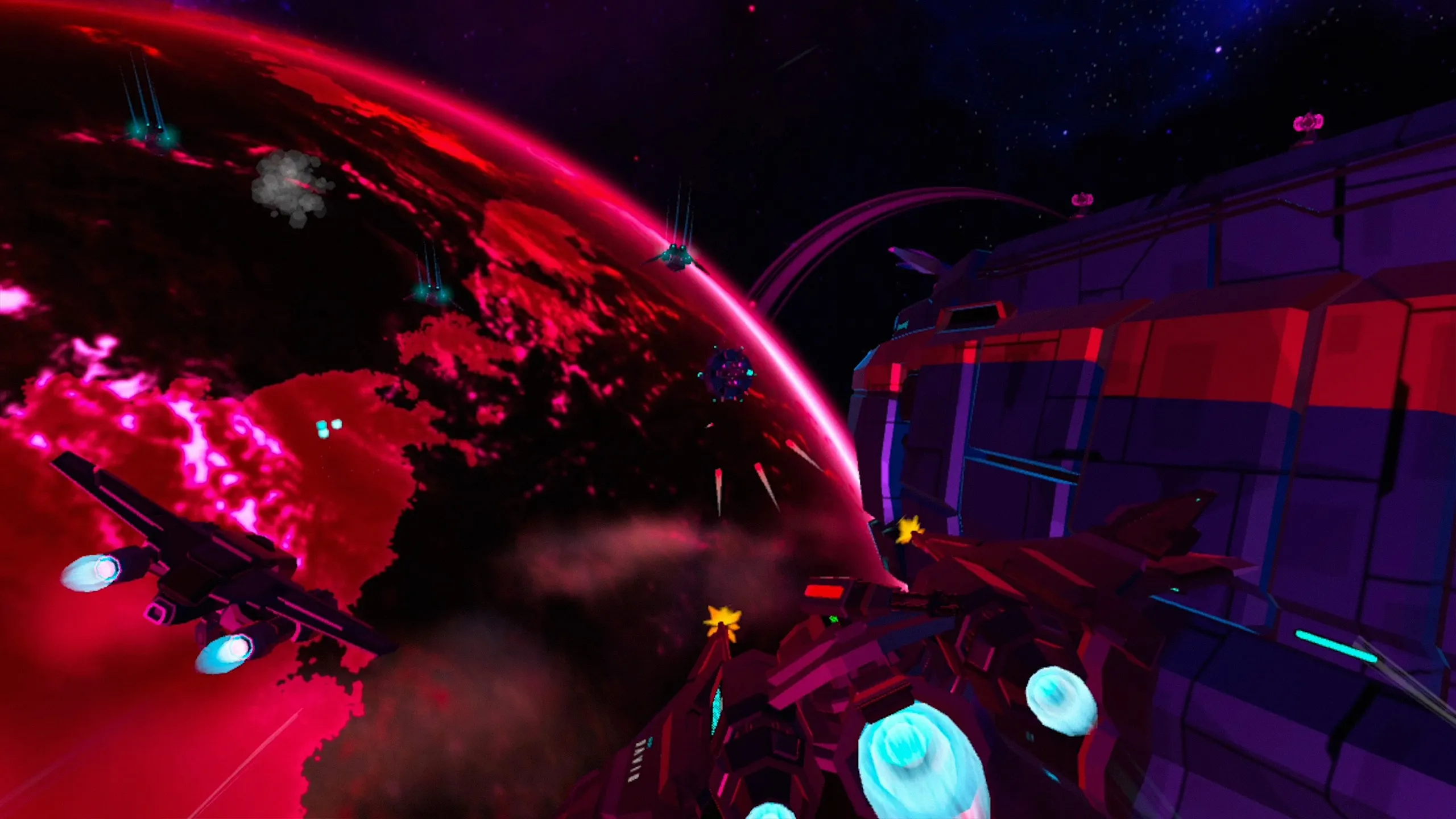 素敵な宇宙シューティングゲーム、嬉しいサプライズは、私はかなり定期的に戻ってくる(これをやっているゲームはいくつかの)、敵の宇宙戦闘機や戦艦の波を射撃してリラックスする必要がある時に! コントローラーのジョイスティックではなく、ハンドコントローラーの位置で船の動きがコントロールされているのが面白い... 大小の戦闘機を右腕と左腕で同時に制御するのが好き(マルチタスク! )