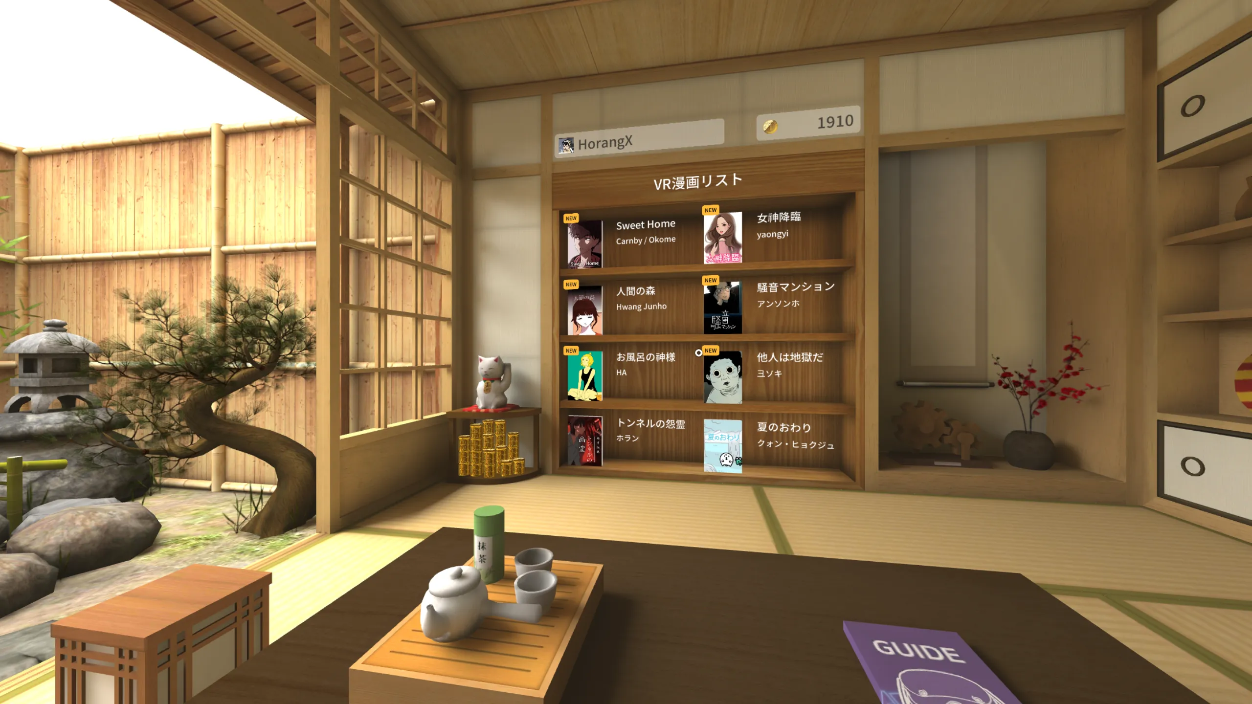 日本語ですが韓国とかの漫画のようです。作者名がどれも知らないカタカナ名。作者の生活している社会や考え方が日本人離れしているので共感も没入感もなく、無為に時間が過ぎてとてもむなしかった。Quest2を購入し時間を無駄にしたと感じたのはこれが初めて。投稿者:hirog3