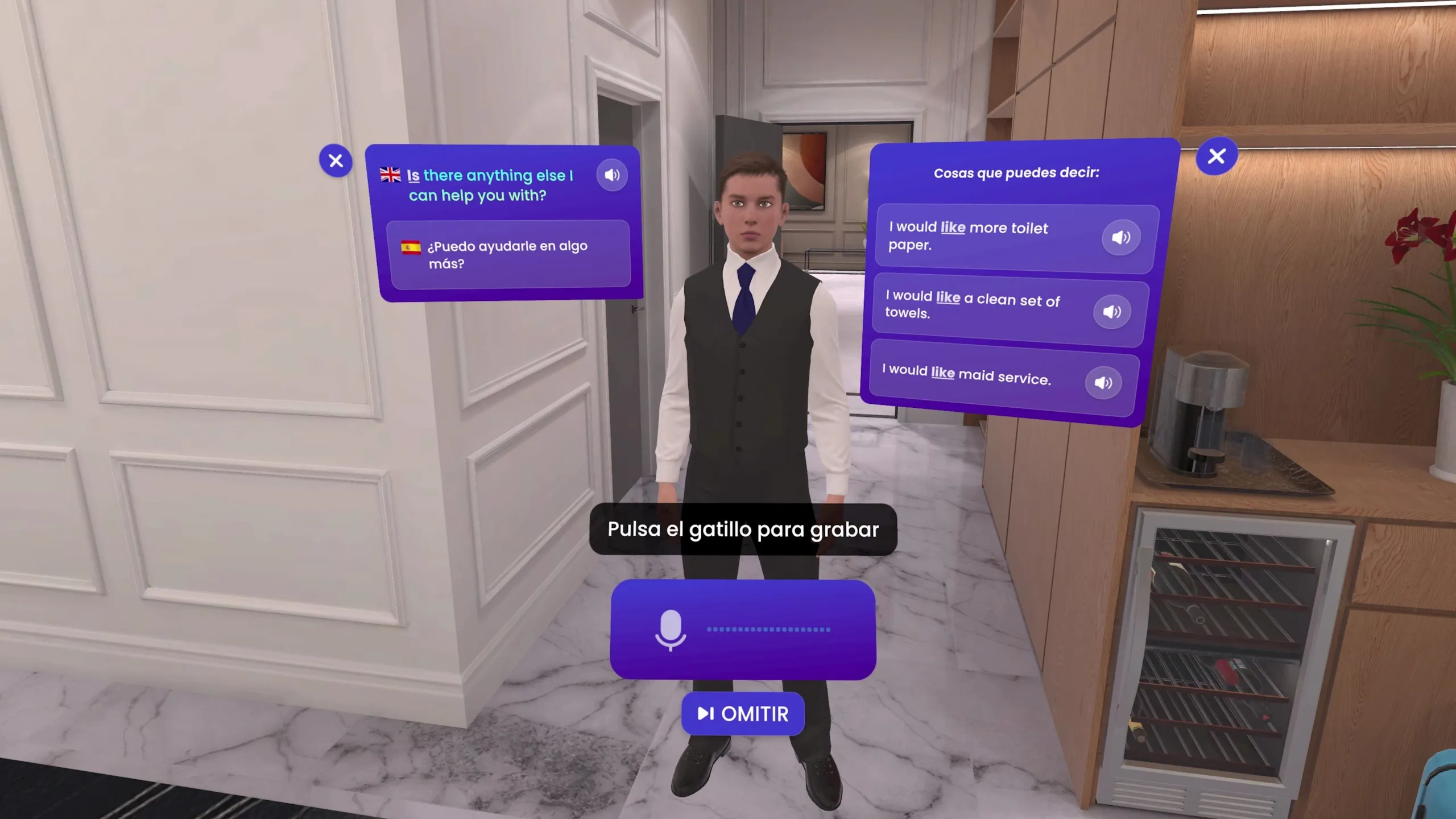 音声認識のフィードバックは、単語を正しく発音するのに効果的に役立ちます。 全ての没入シナリオは、レッスンが終わるまで続けるのではなく、レッスン全体で挑戦的な言葉やフレーズを選択的に繰り返す必要があります。 また、いつでも全てまたはどんな単語でも音声フィードバックをするオプションが必要です。 最初は歩き回るときにレッスンエリアに戻る方法について直感的ではありません。 レッスンメニューへの自動輸送ポートが必要です。投稿者:tempest.248