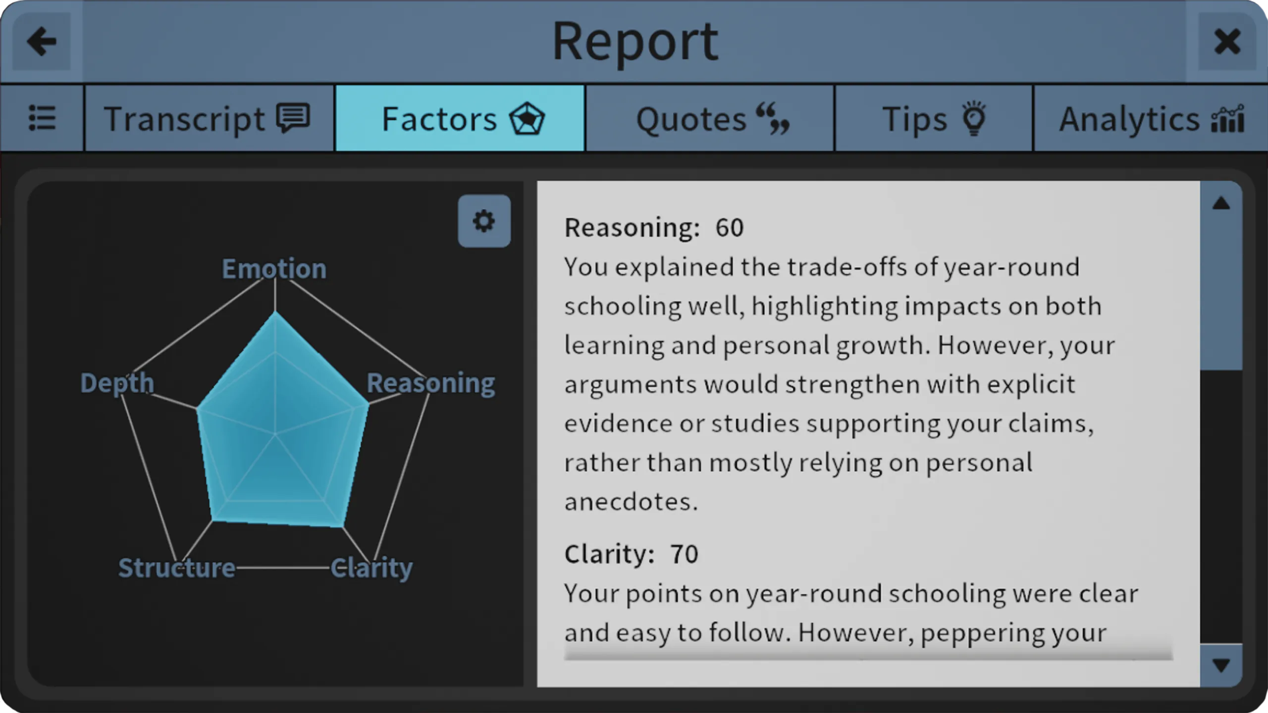 アプリは自分のプレゼンテーションやスピーチの準備とリハーサルにとても便利だと思う。 これは、あなたのスピーチを配信するのに非常に良いVR環境を与えるだけでなく、AIが生成したフィードバック、録音、スピーチのトランスクリプトでバックアップしてくれる優れたプラットフォームです。 AIが生成したフィードバックは非常に良い。 それは、ここ数ヶ月の私のスピーチ配信の改善に向けた多くの現実的な指摘を与えてくれました。 原稿を読んだり、録画を見たりすると、観客としての自分のスピーチの影響を評価する機会を与えてくれる。 私はこのソフトウェアを使い始めて以来、私のスピーキングスキルが向上していることを確かに知っています。 私はスピーチをより良く構造化し、言葉を詰め込まないようにし、以前より客観的に話すことができていると感じている。
