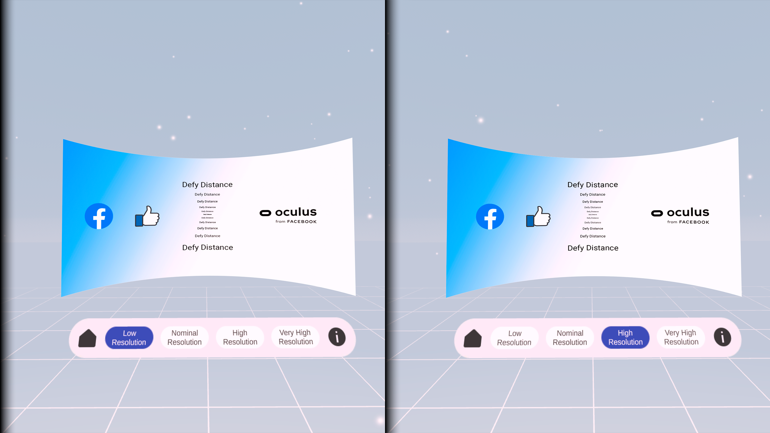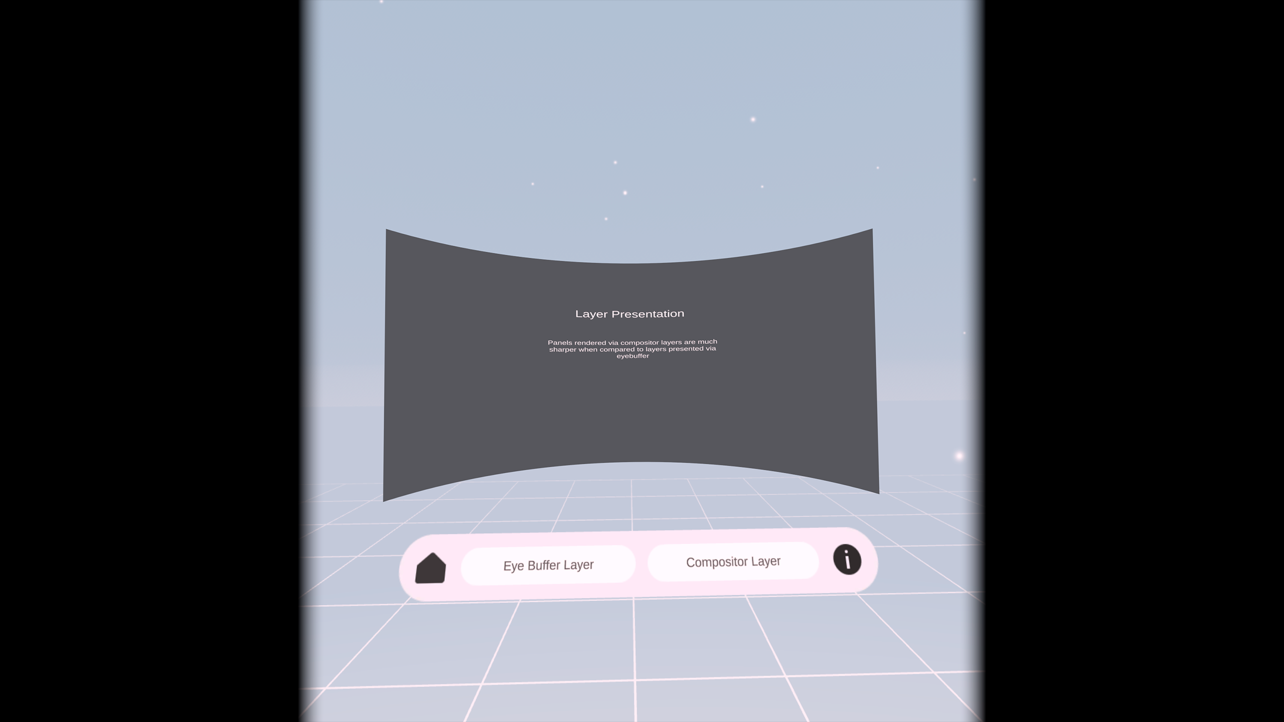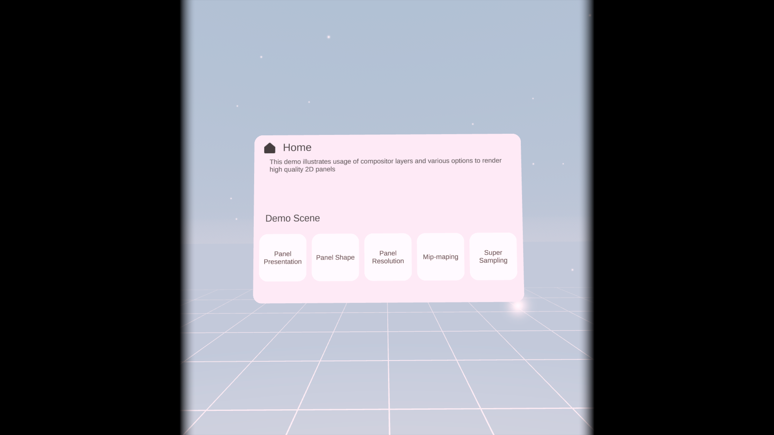 2D Panels Demoは、VR開発者とデザイナーのための2Dパネルのための高品質なレンダリング方法を実証する実験的なサンドボックスです。 アイコンやテキストのような二次元要素はほぼ普遍的に使用されており、ピークの画質で提示されるべきです。 二次元パネルをレンダリングすると、開発者はぼかしやチラつきなどのアーティファクトのレンダリングに遭遇するかもしれません。 このデモは、これらの芸術物とそれを緩和する方法を示しています。 異なるテクニックを比較して、品質の利益を判断しましょう。