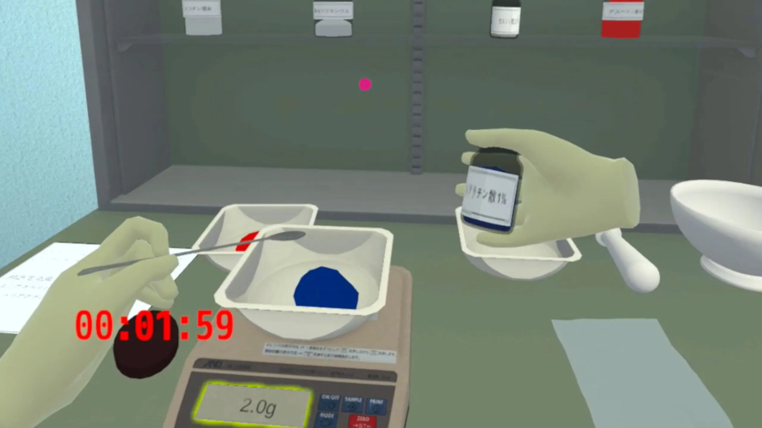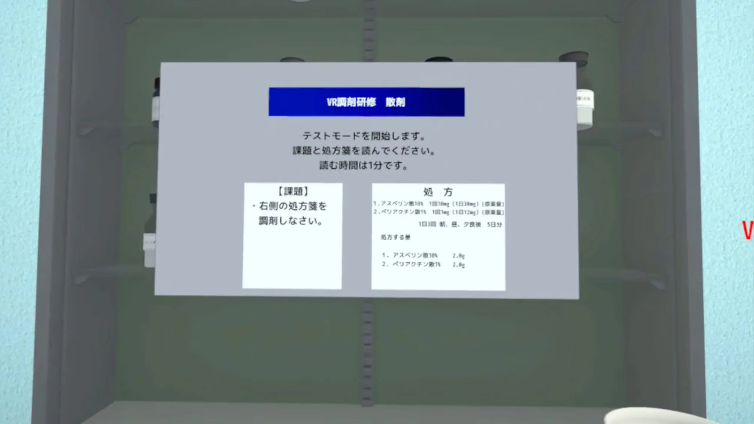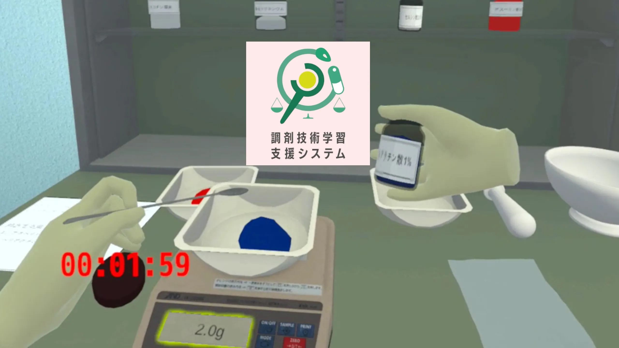 剤研修の中の散剤をVR上で実施するためのアプリケーション