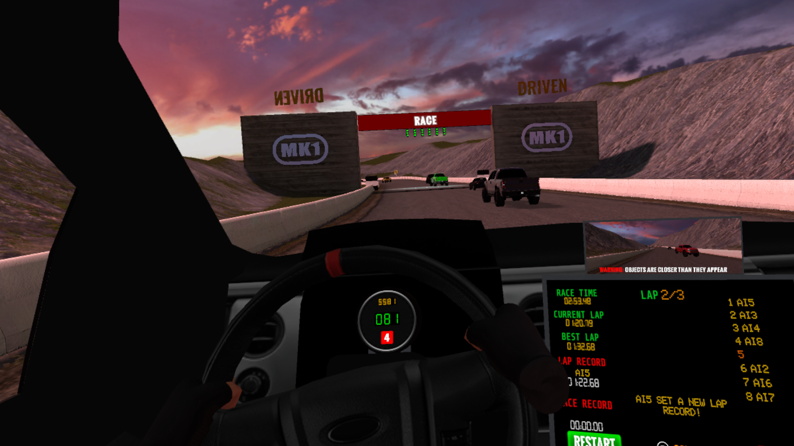 病気にならずにリアルな世界観を見せるレーシングゲームをVRで見つけることは難しいですが、このゲームは成功しました。 振動レベルからメカニックまで、このゲームは宝石です! 私はスピンアウトとクラッシュについてのレビューを読んだことがある。まあ、私はそれをよく経験したと言おう。 ブレーキを使い始めるまでは、他のドライバーを見て、外のコーナーを選び、3周目まで誰かを通過するのを待っていました。 戦略と守備的なドライブが本当に行動に移す最初のレーシングゲームです。 私は、ただ最初から最後まで集中し、集中する必要があるから、現実から運転席に漂っているのを感じた。 マルチプレイヤーでどんな感じになるか楽しみ、そしてこの素晴らしい開発チームのさらなることを楽しみにしています。