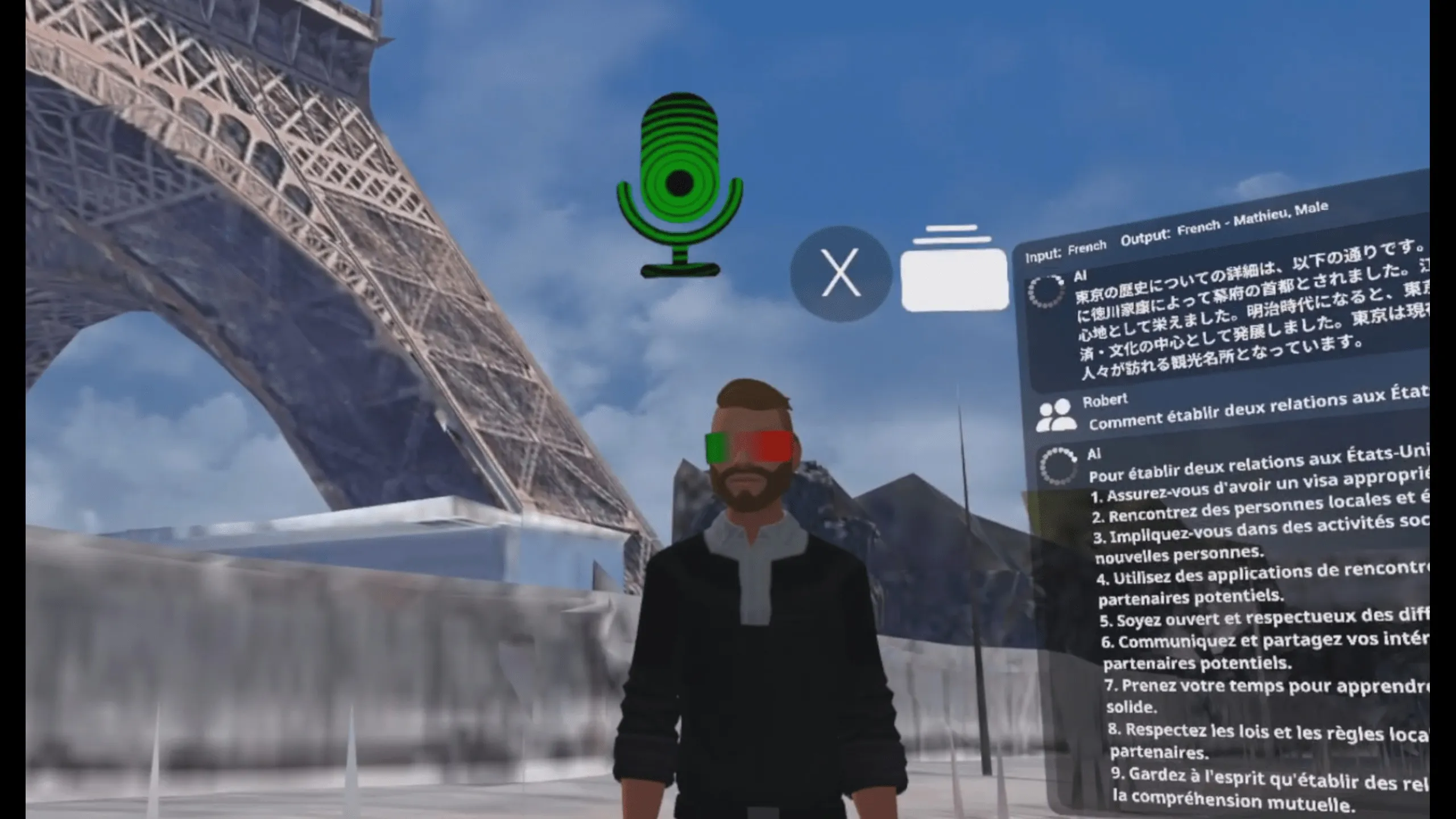 一度中に入ると、3Dで地球上のどこにでも飛べ、AIで探検、メッシュとハイレゾパノラマの切り替え、声で世界を構築、ギャラクティカの自家土地、VRで他の人に会うことができます。