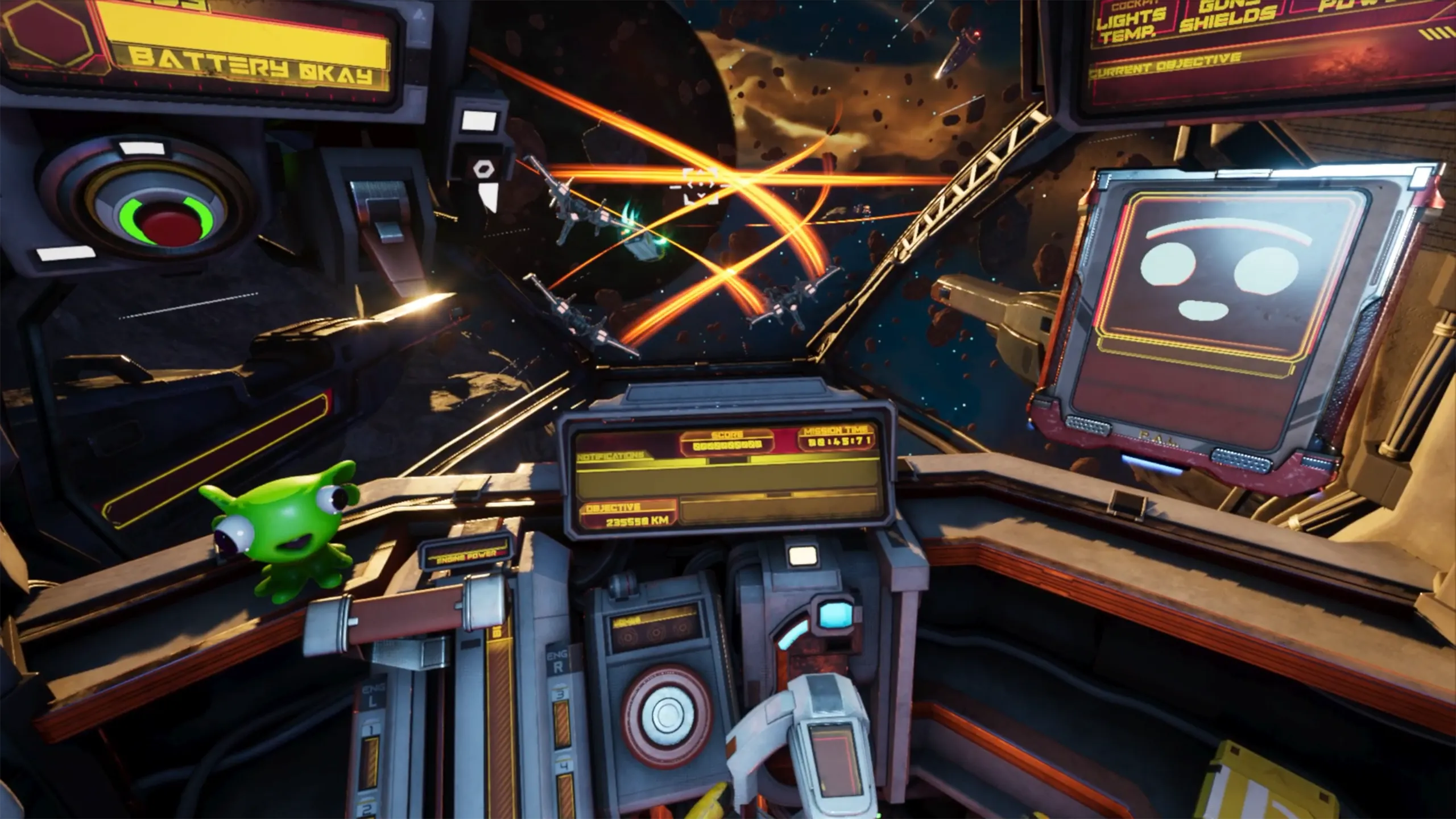 •船と一つになる:天井から床まで詰め込まれたコックピットに身を置き、物理に基づいた相互作用がある(生き残りたいならすべてに目を離さないように! )。