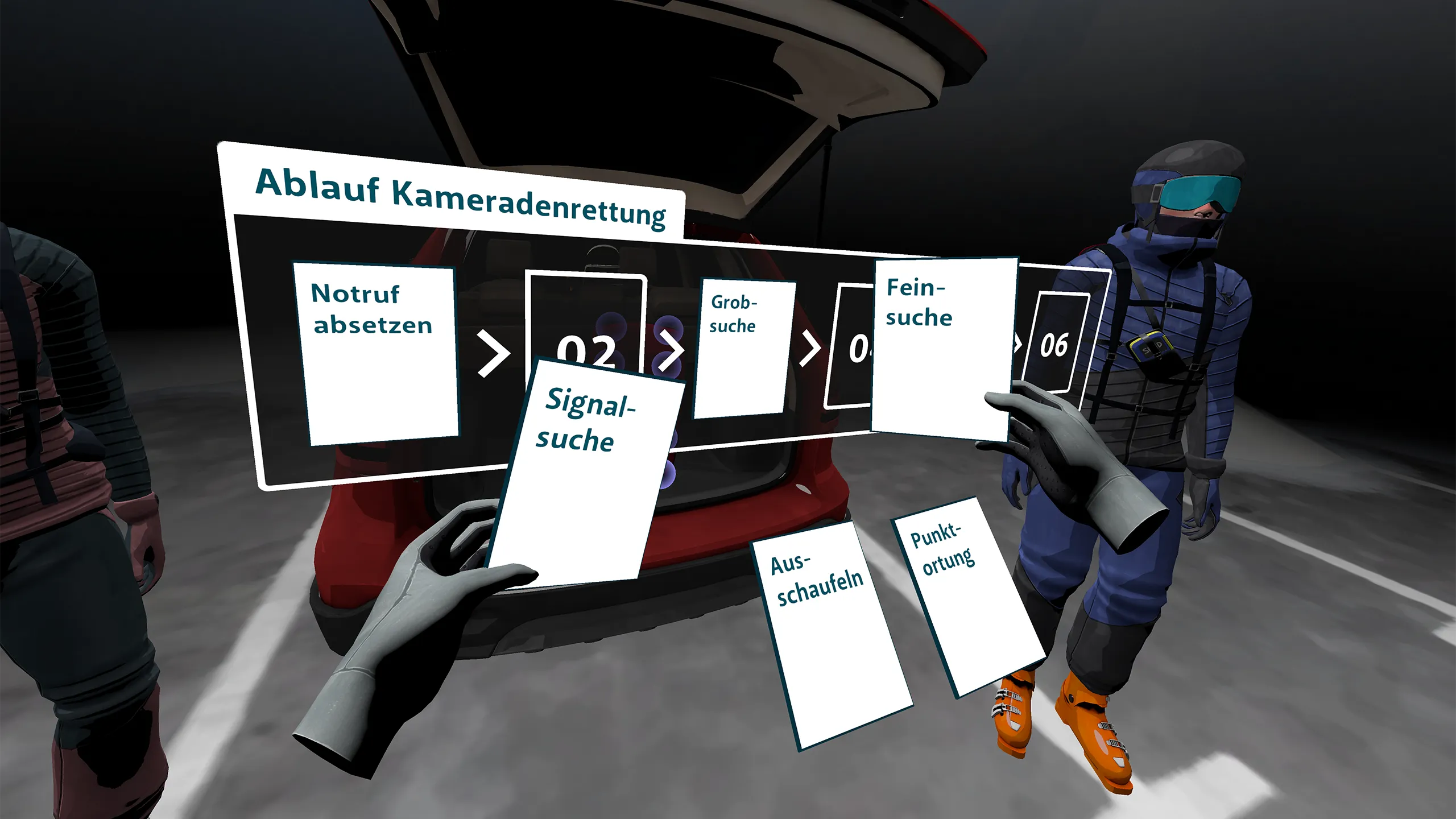 Avalanche Emergency VRは、没入感あふれる環境の中で、ユーザーがこれらの重要な手順を体験、実践し、内製化するシンプルでシームレスな方法を提供することを目指しています。 さまざまな捜索段階を通して、ビーコン、プローブ、ショベルなど、すべての不可欠な救助ツールは正しく雇用される必要があります。 ランダム化された埋葬シナリオでは、ユーザーは救助スキルを高めるためにNPC(プレイできないキャラクター)の助けを借りて、間違いを犯したり、それから学習したり、改善する地域を特定したりすることがあります。 雪崩救助の世界では、毎秒が大切です:Time is Life!