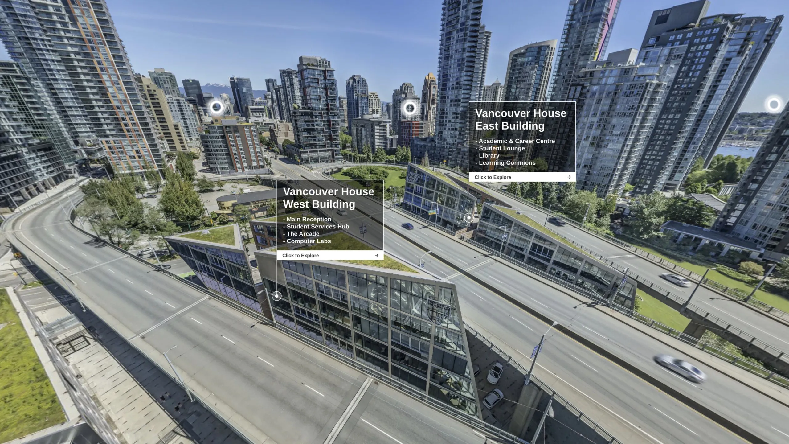 この没入感あふれるモバイルVR体験を通して、BCバンクーバーダウンタウンにある美しいUCWバンクーバーハウスキャンパスを探索しよう。
