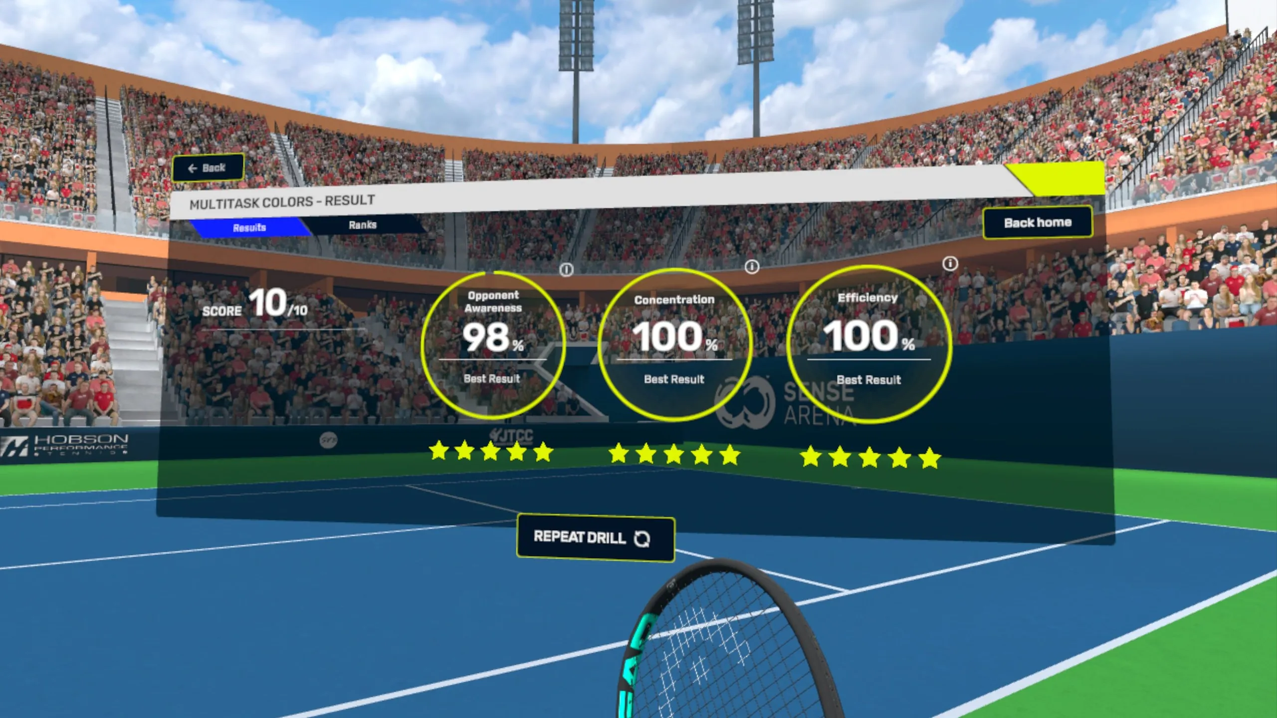 初めてVRを試した。めまいと吐き気がする前にアプリを起動するのに苦労した。 YouTubeのアドバイスに従い、生姜を食べ、頻繁に休憩などを取って、2回目は勇気が出ました。 時間と資金不足で本物のコートでは決して出来なかったガレージで運動とボールを打つ体験が出来ました。 私はセンスアリーナに非常に満足しており、本当に本物のテニスのワークアウトとトレーニングを行うことができます。 プロ選手だったらハプティックなラケットやVRテニスで実戦を傷つけるんじゃないかと心配になるけど、テニスは全く無いから大好き!