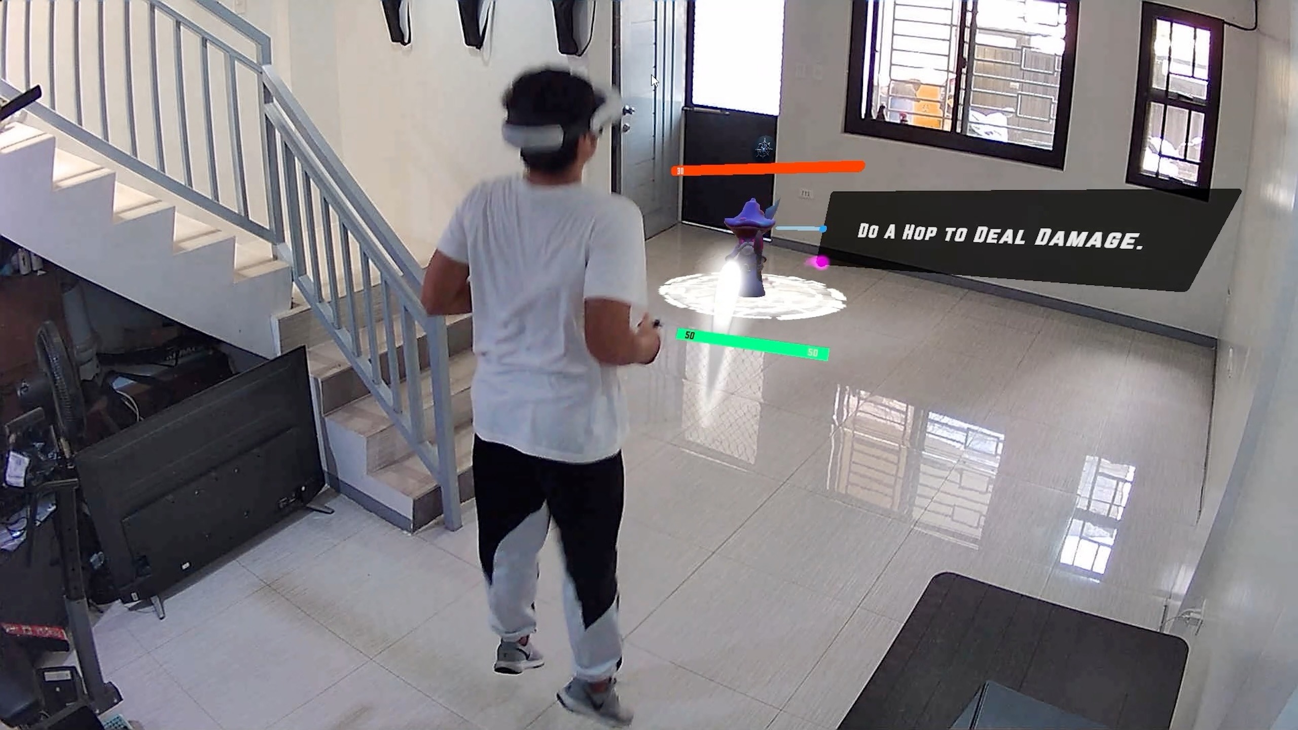 - 戦闘中に挟まる運動のチュートリアルが見づらい:MRなのにも関わらず、細く黒い線で描かれていて背景と同化してしまっている。
