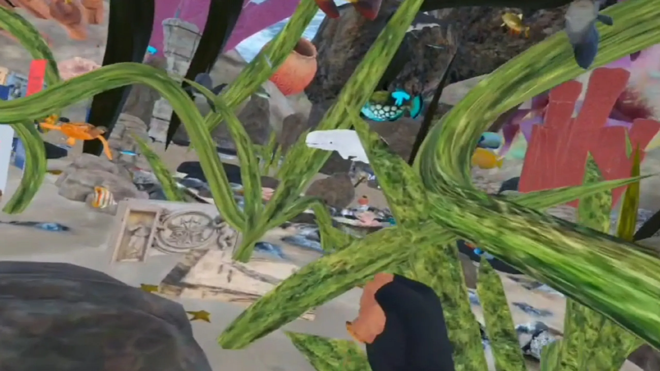 - ウミガメ、そしていくつかの植物や動物の混在現実と手追跡プレビューエリア