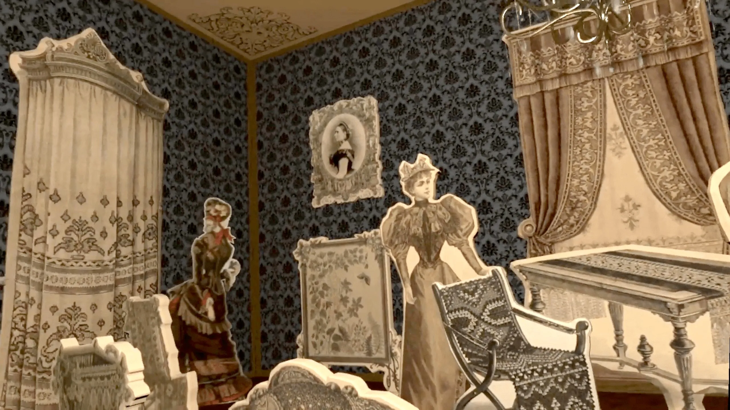 非日常のVRペーパーシアター「DER BAZAR」の魅惑的な世界に足を踏み入れる。 ヴィンテージ写真に沿って家具や小道具を丁寧に配置し、昔ながらの部屋のノスタルジアに浸りましょう。 活気あふれるベルリンの街で発行されたドイツの有名ライフスタイル雑誌「DER BAZAR」から調達された本物のオブジェを展示する、19世紀ドイツのエッセンスを捉えた各部屋がこだわって作られています。
