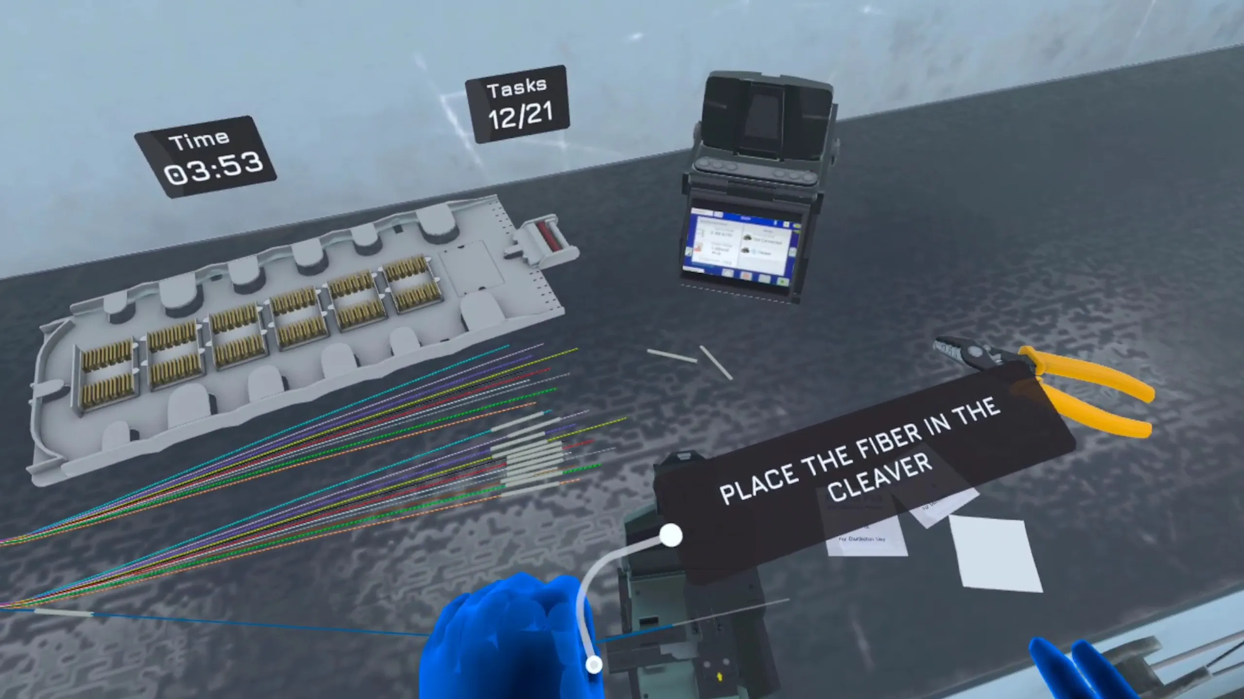 免責事項:この経験はシミュレーションであり、専門的なトレーニングに代わるために使用するべきではないことにご注意ください。 実生活で光ファイバーを使うときは、常に適切な安全プロトコルを使用してください。