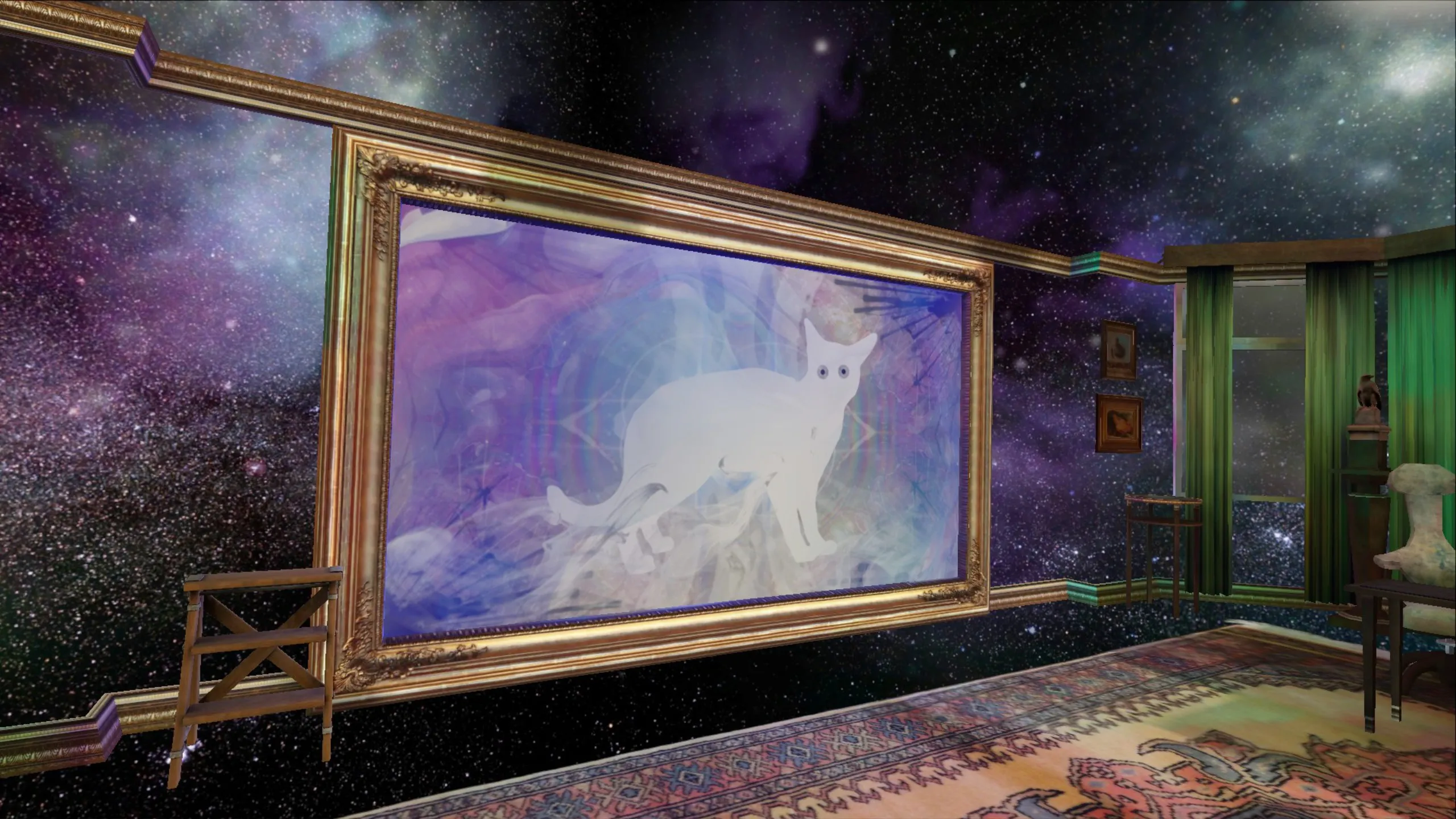 ひとつの環境で、絵を描きながら無限に落ちることを選ぶことさえできる - シュールで奇妙に落ち着くタッチ。 エジプトのテーマも目立ちますが、個人的に好きなのはアートがアットホームな展示セットです。