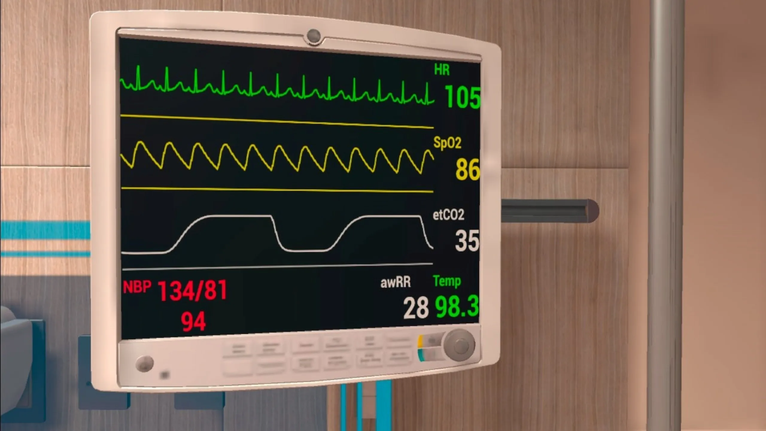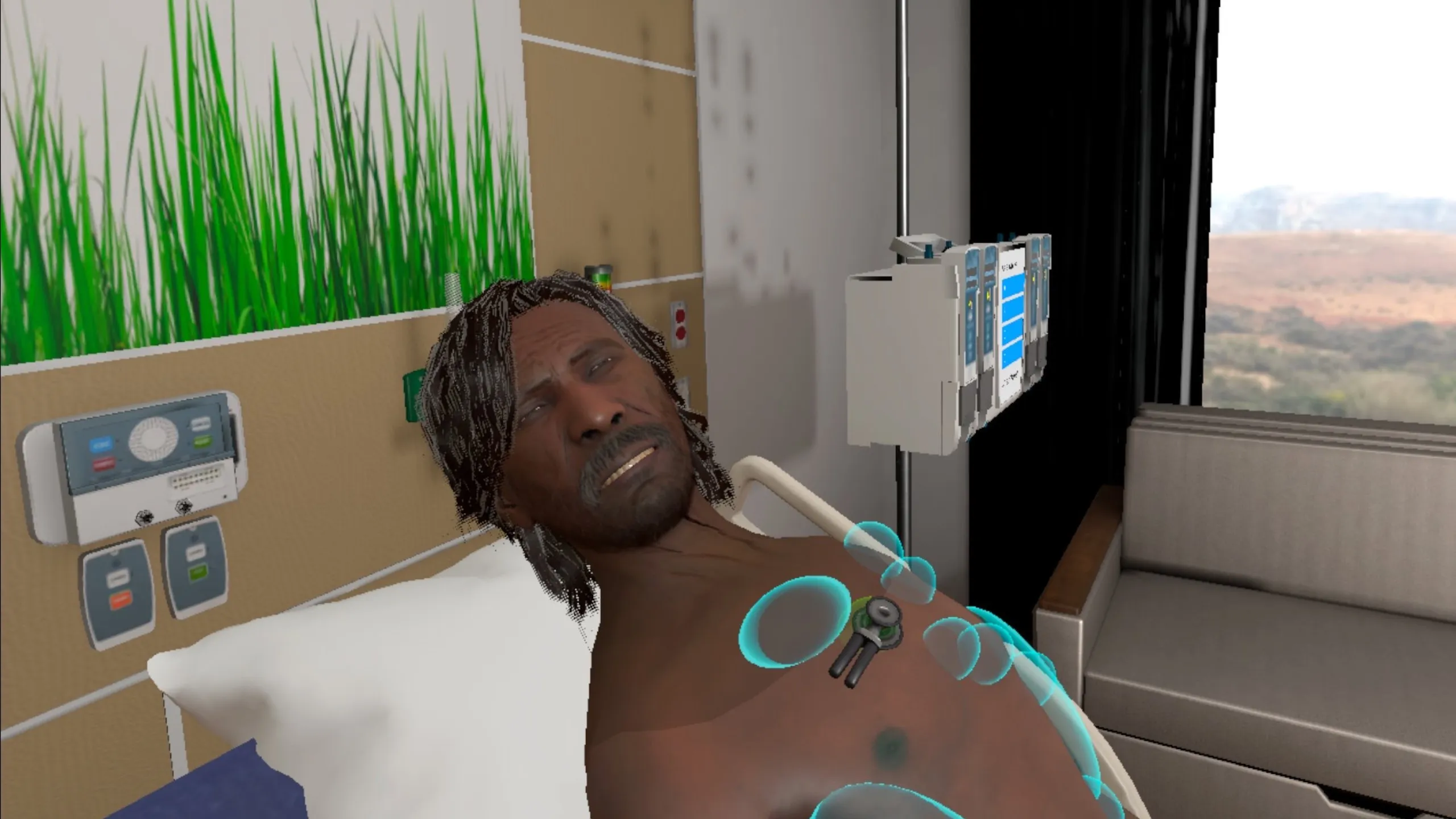 学生と指導者のためのVR看護シミュレーション オンデマンドの臨床実習と経験に向けて能力を進めるために看護指導員によって設計されました。 AI患者と対話し、完全な評価、看護介入を行いながら、自動的に成績を見直します。