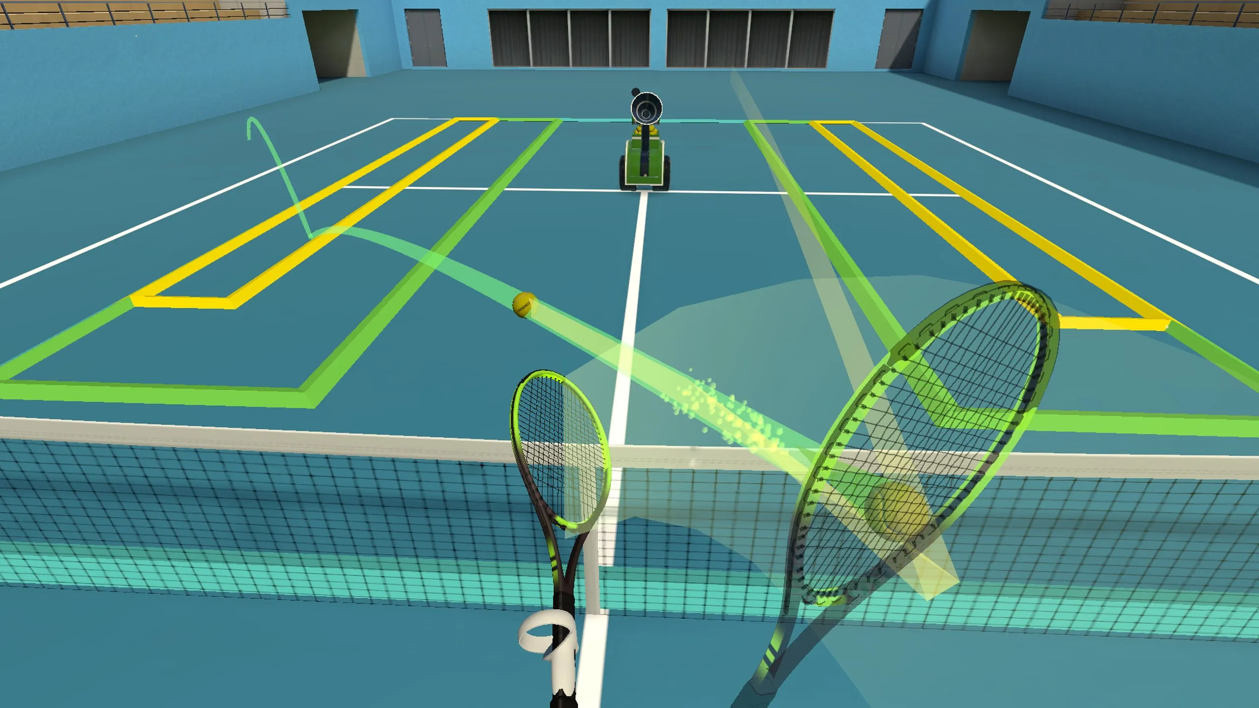 - 驚くほど現実的な物理学。 これは私が想像できる本当のテニスのための最高のボールマシンと練習シムです。 あなたのコントローラー用のラケットアタッチメントを手に入れ、すばらしい完全カスタマイズ可能なスイングドリルと史上最高のボールマシンを準備しましょう。 二度とボールを拾う必要はない。 このクオリティのゲームがこれ以上ないなんて信じられない。 これだけでメタクエストの購入全体に価値があり、実際、私がクエストを使う唯一のものです。