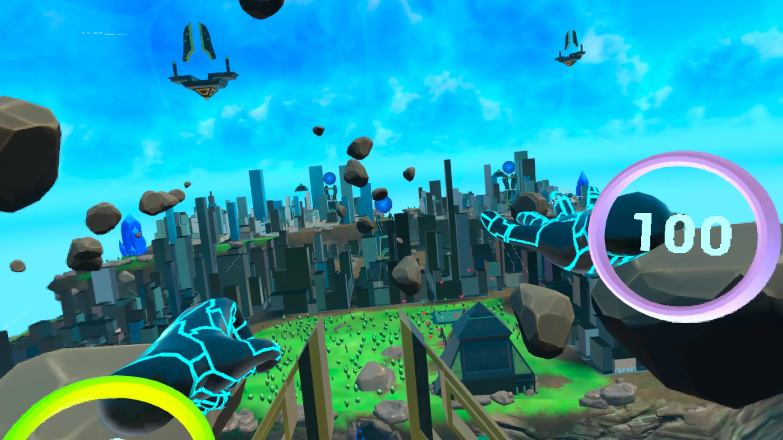 飛行はまだ始まりに過ぎない。 あなたのエネルギーを使用して強力な爆発を解き放つか、ゲームモードの実験的な武器から選択してください。 手持ちのシールドで迫ってくる攻撃をブロックし、鋭い反射神経と生き残る戦略に頼ってください。