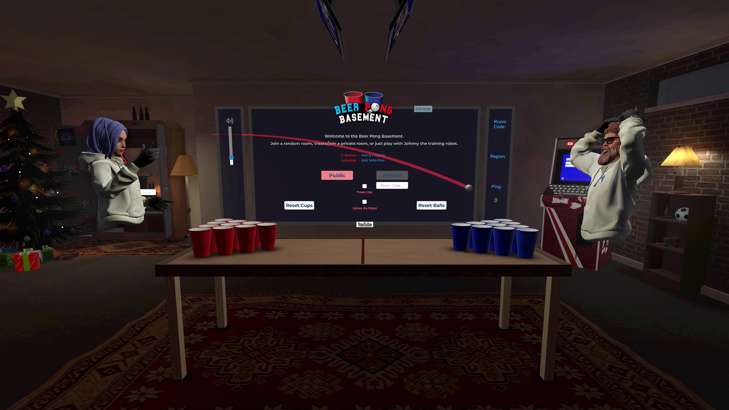 バーチャルリアリティでビアポンの古典的なパーティーゲームを体験しよう! 友達に挑戦するか、トレーニングロボットに対してスキルを練習しよう。 通常のビアポンをプレイしたり、ワクワク感を加えて、アイテムのアレンジやパワーアップで物事を変えよう。 Youtubeライブラリ全体を一人で見るか、友達と一緒に見るか。 Beer Pong Basementは、ビアポンより提供するものがあるけど。 クレジットを獲得するためにスロットマシンまたはフラッピーキューッピーアーケードマシンであなたの運試しを。 または、このゲームが提供する多くの異なるピンポンボールをロック解除しようとしてください。 Beer Pong Basementでパーティーをヘッドセットに持ってこい!