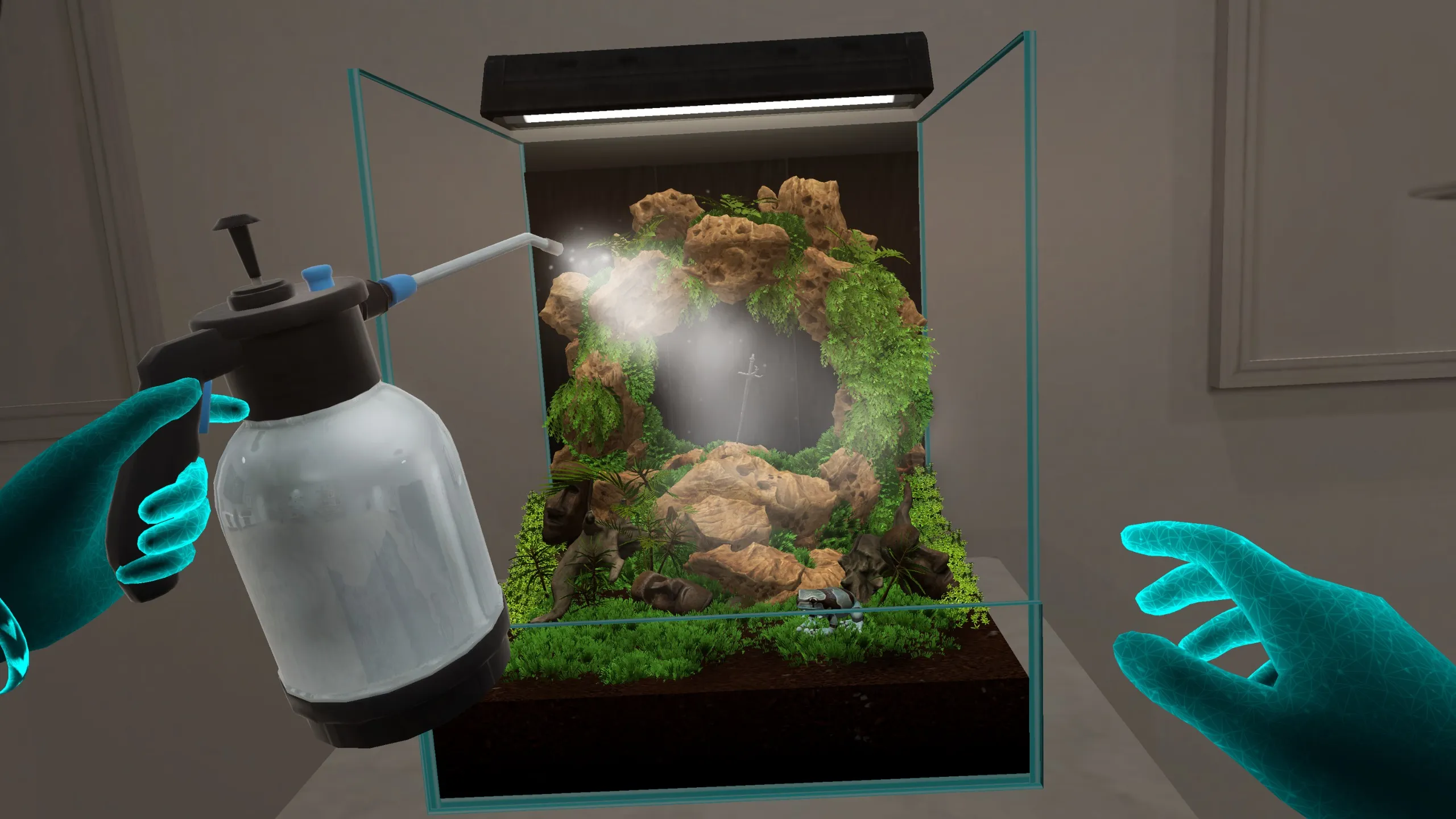 混在現実モードは本当のハイライト。 私の本当の机の上に私のテラリウムを見ると、まるで目の前に小さな生きている宇宙のように感じました。