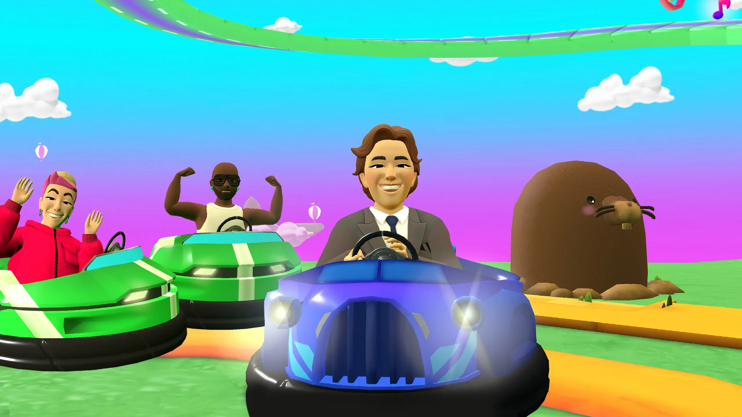 BumpyRへようこそ、あなたのメタアバターがバンパーカーを運転するカジュアルソーシャルVRゲーム! 車のゲームだけど、ドライブじゃなくてBUMPでしかない!