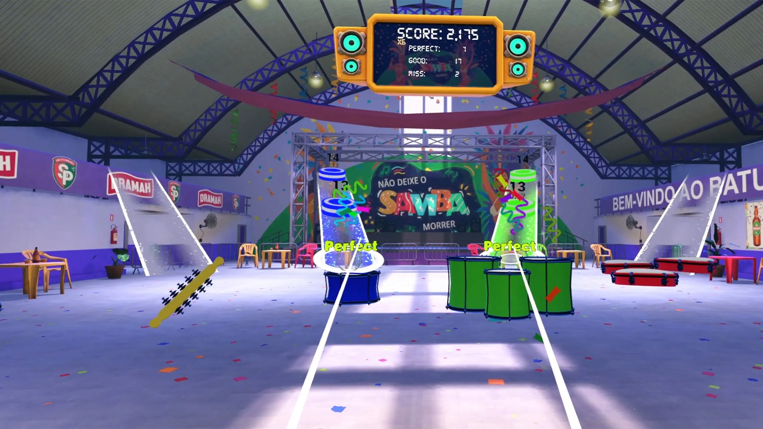 Meta Questにカーニバルの魔法をもたらすバーチャルリアリティリズムゲーム「Batuque Beats VR」でサンパウロの活気あふれる雰囲気に飛び込もう。 リハーサルコートからsambódromoでのパレードまで、パーカッションの芸術を習得し、新しいバテリア指揮者として旅に出よう。