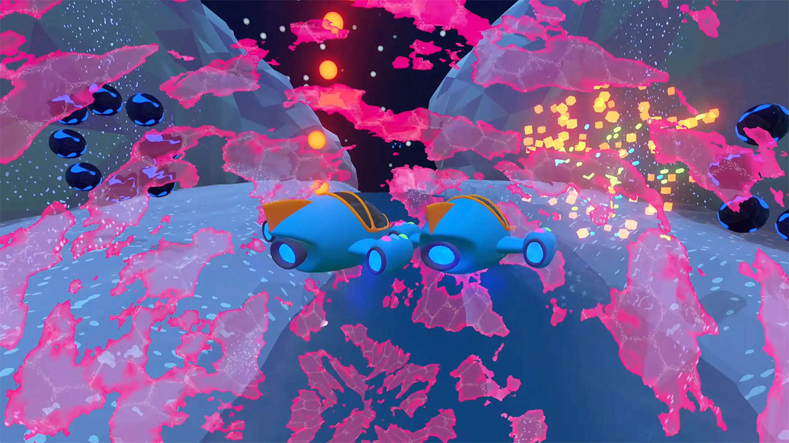 "2つの船のチームを担当し、あなたの冒険中に散らばった多くの敵に立ち向かえ。 この冒険、話そう。 時には昼、時には夜、あなたはカラフルな環境で進行し、主にエレクトロな音楽的な雰囲気に染み渡る。 この冒険は24の異なる年代記で構成されており、それぞれ専用の音楽の周りに考えられます。 正確さ、回避、コーディネーションが、この危険な旅の主要な原料となるでしょう。