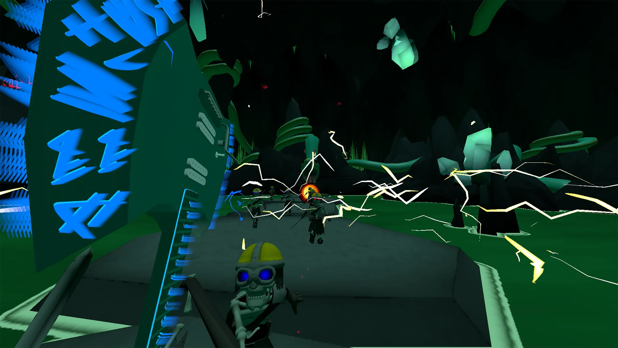 メタルバース全体に頭蓋骨、悪魔、その他の群れに対してヘビーメタル神の怒りでツインギター軸を振る!