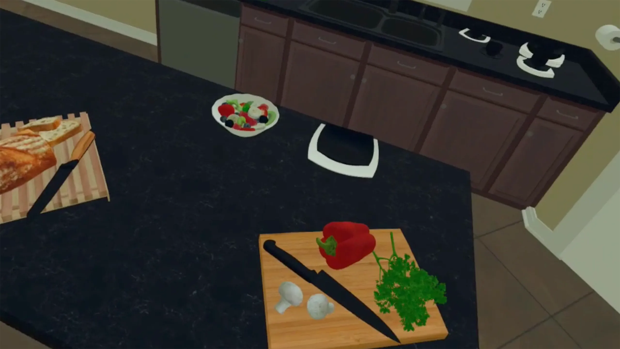 利用者が調理している最初のパーソン住宅火災シミュレーションは、気が散り、住宅火災が発生します。 ユーザーはその後911に電話し、家を出て火災の余波を眺める。
